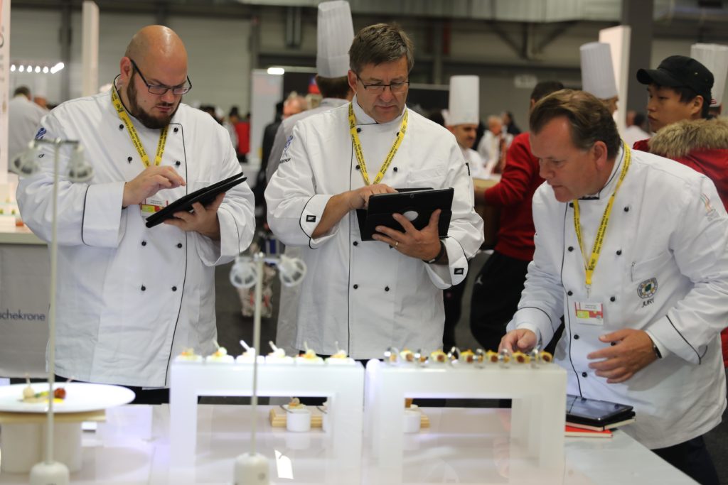 Insgesamt 67 Juroren entscheiden bei der IKA/Olympiade der Köche über Sieg oder Niederlage. „Allen Teilnehmern bei einem so großen Kochevent gerecht zu werden und aus allen Teilnehmern und Teams die Besten zu ermitteln, ist eine große Aufgabe für die Jury“, weiß Frank Widmann. Er hat als Jurypräsident bei der diesjährigen IKA den Juryvorsitz inne. „Aufmerksame und faire Juryarbeit in den einzelnen Jurygruppen ist dabei die wichtigste Voraussetzung“, so Widmann. Die Jurorenteams bestehen je aus fünf bis sieben Mitgliedern. Wer Teil der IKA-Jury werden möchte, muss einmal selbst aktiv in einem Team gewesenen sein, englisch sprechen können und ein Juryseminar besucht haben. Außerdem muss er einschlägige Juryerfahrung gesammelt haben, um bei einem internationalen Wettbewerb dieser Größenordnung jurieren zu dürfen. So international die Teilnehmer der Kocholympiade sind, so sind es auch ihre Jurymitglieder. „Fachliches Wissen über die landestypischen Produkte, die Vielfalt der Kochpraktiken und die Ursprünge der einzelnen Gerichte sind bei der Juryarbeit sehr wichtig“, erklärt Frank Widmann. „Um dies zu gewährleisten, haben wir Juroren aus allen Kontinenten zur IKA eingeladen.“