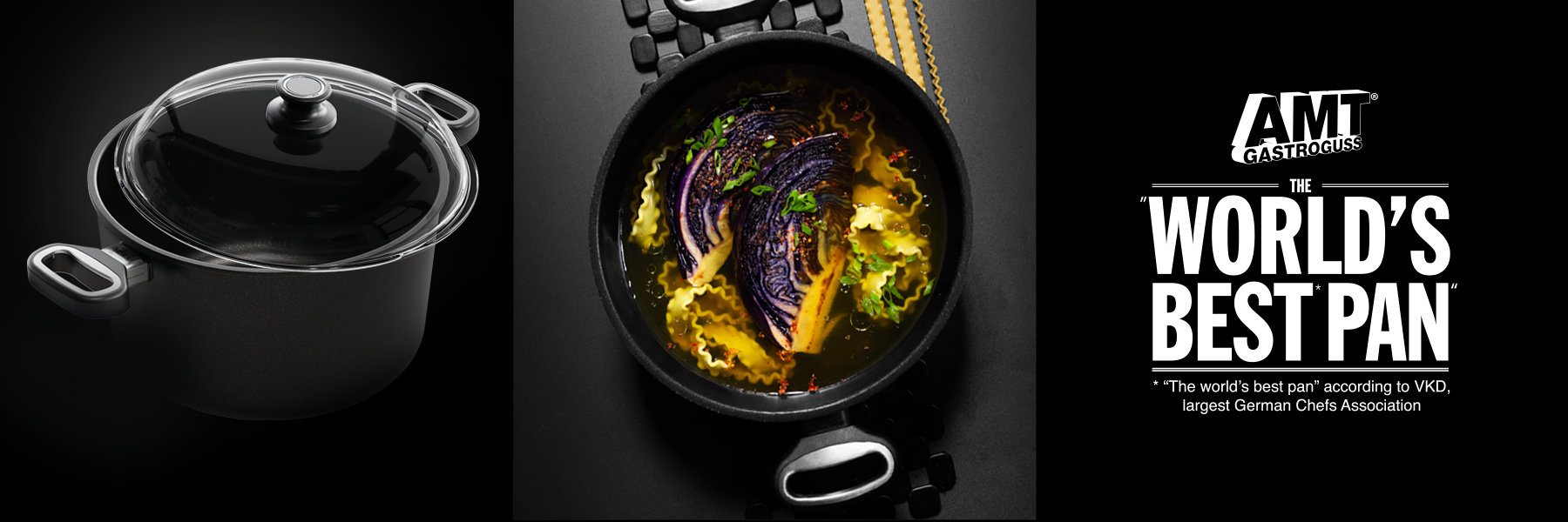 Durch ausgewählte Materialien und eigens entwickelte Lotan®-Oberflächenveredelung kommen Kunden zeit- und energiesparend zum besten Ergebnis. Nicht umsonst ist AMT Gastroguss offizieller Ausstatter der deutschen Köche Nationalmannschaft.
